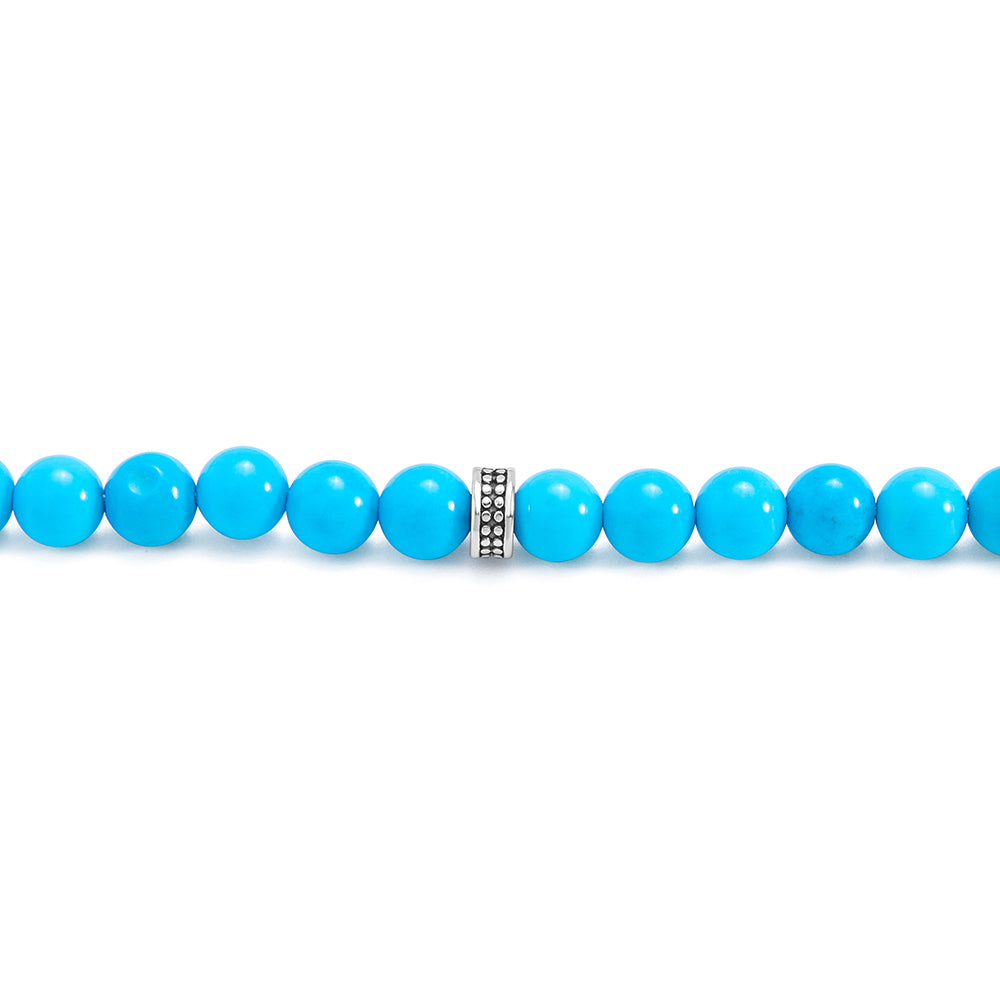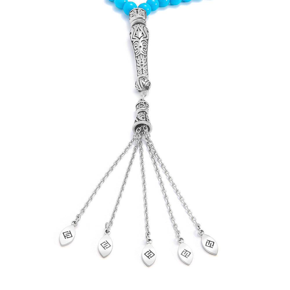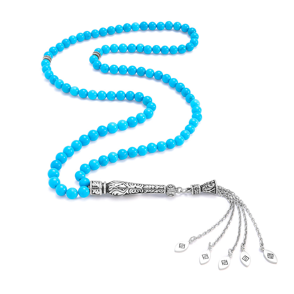 سبحة 100 احجار فيروز الهاولايت بيلية 6 مل طقم ستانلس ستيل عيار 316L مطلى فضي واسود