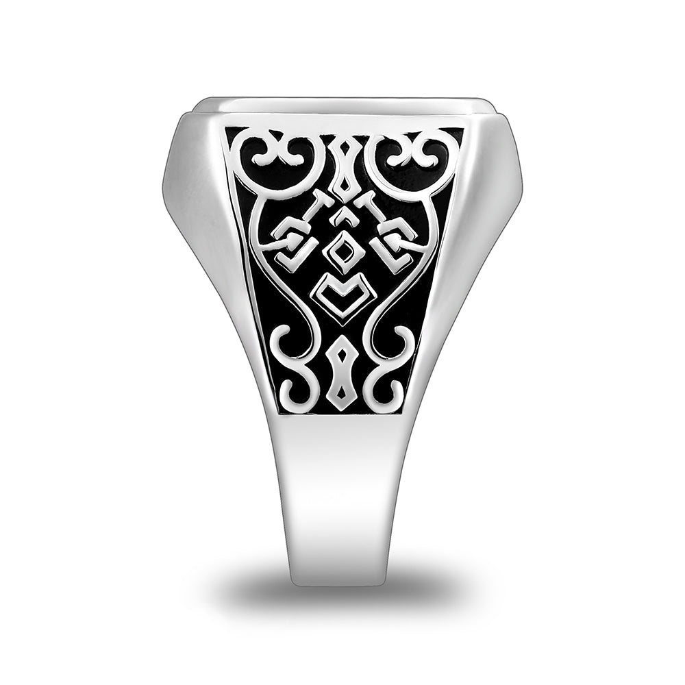 خاتم رجالي إسلامي من الفضة الخالصة عيار 925 مطلي روديوم و اسود