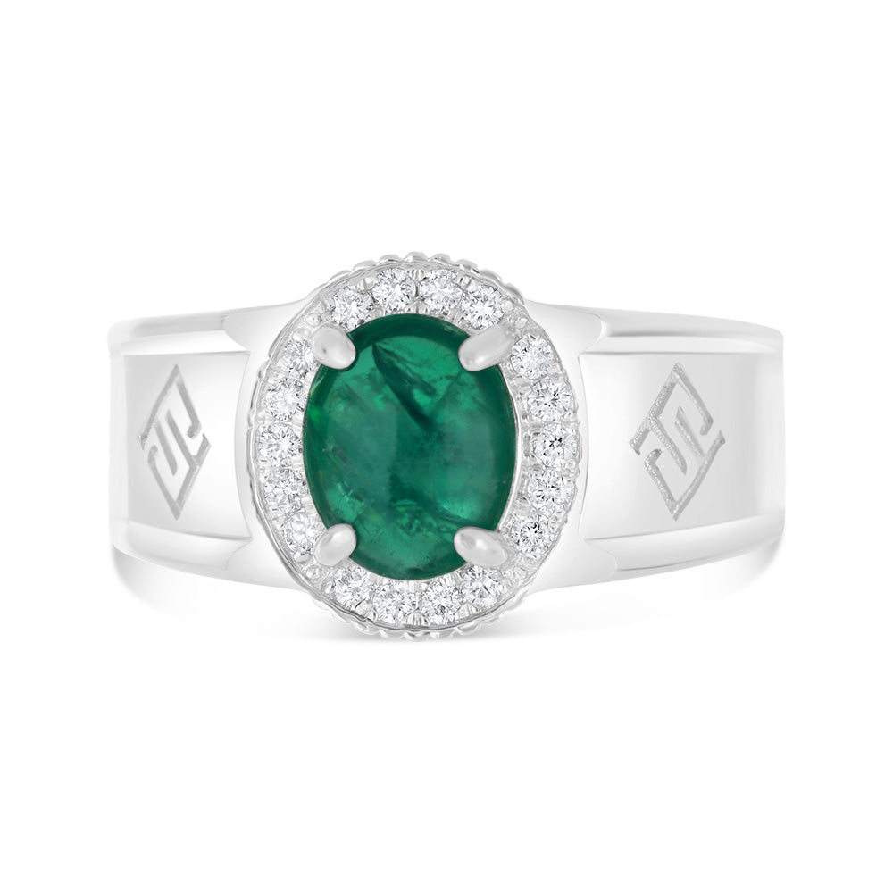 خاتم رجالي عيار 925 مطلي روديوم مرصع بحجر الزمرد الطبيعي و الالماس الطبيعي سي في دي جودة في في اس