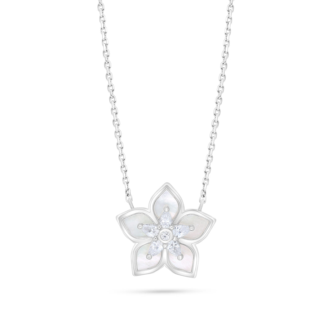 عقد من الفضة الخالصة عيار 925 مطلي روديوم مرصع صدف ابيض و فص ابيض