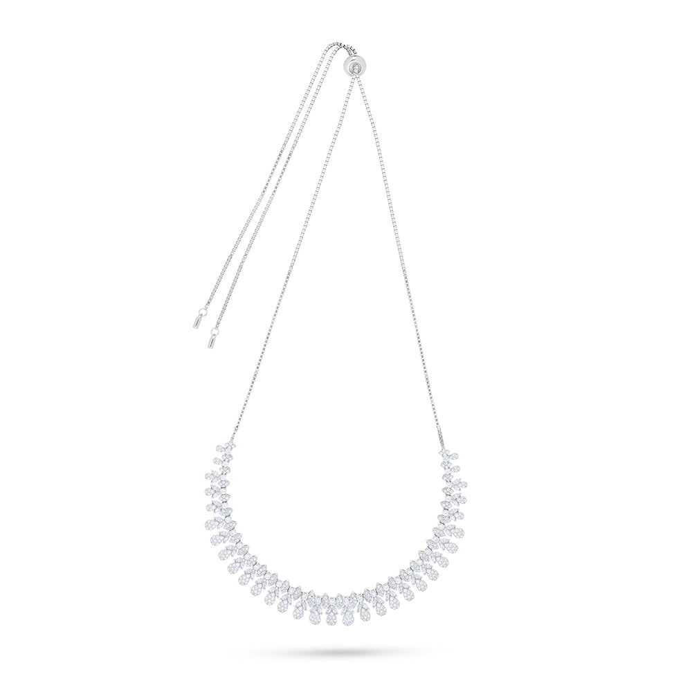 عقد من الفضة الخالصة عيار 925 مطلي روديوم مرصع فص ابيض