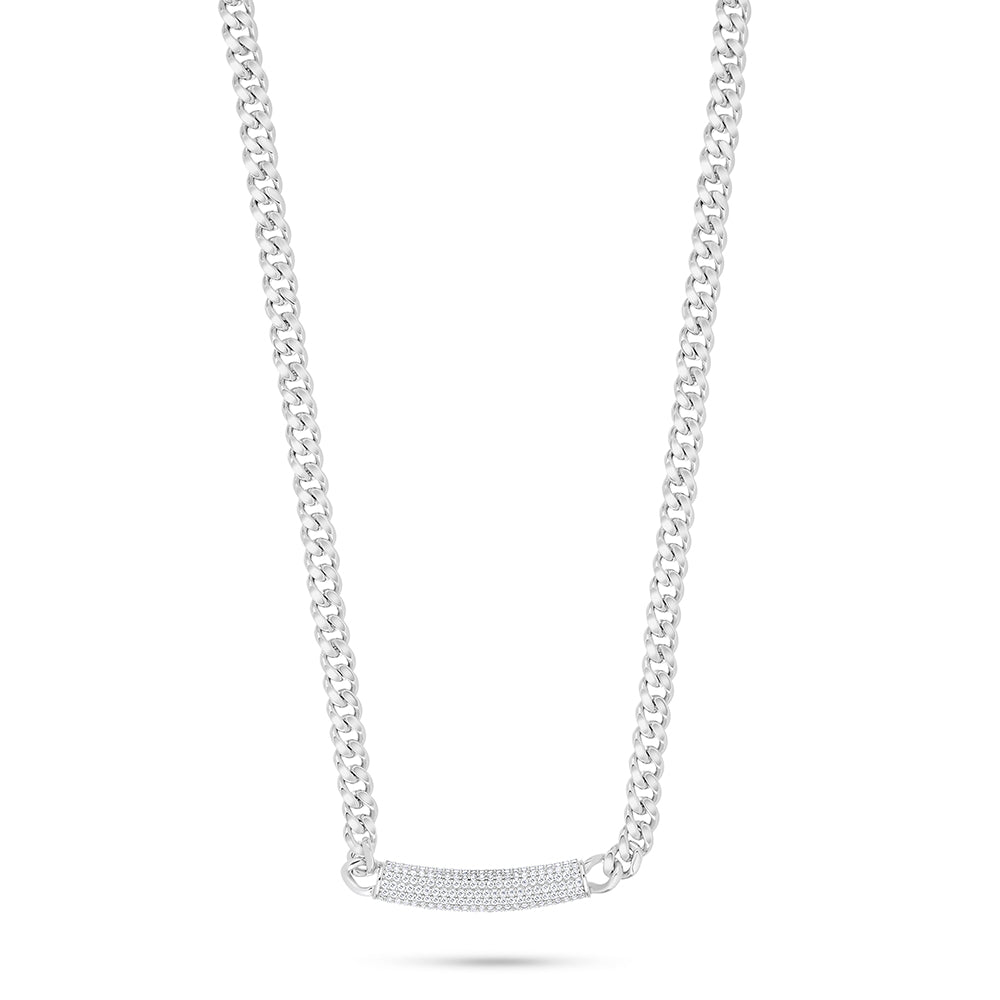 عقد من الفضة الخالصة عيار 925 مطلي روديوم مرصع فص ابيض
