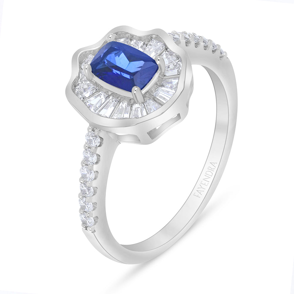 Total Weight: 3.3g تألّقي بعمقٍ ملكيّ مع خاتم من فايندرا مصنوع من الفضة الخالصة عيار 925 والمطلية بطبقة روديوم فاخرة تعزّز صفاءه ولمعانه، يتوسّطه حجر أزرق داكن بقصّة كوشن مشعّة (Cushion Radiant Cut) يعكس درجاتٍ غنية من الأزرق الملكي بتألّقٍ آسر يفيض ثقةً وأناقة، تحيط به هالة هندسية متقنة من أحجار الزركون الأبيض بقصّة باجيت مرصوفة بأسلوب شعاعي يمنح التصميم بُعدًا معماريًا راقيًا وبريقًا ألماسيًا لافتًا، بينما ينساب الإطار المموّج بانحناءاته الناعمة ليبرز تفرّد الشكل ويعزّز حضوره الفاخر، وتكتمل الفخامة بأحجار زركون أبيض مرصوفة على جانبي الساق لتمنحك إشراقة متوازنة في كل إطلالة بأسلوب Fayendra المميّز. اقتنيه الآن ودعي الأزرق يعبّر عن قوّتكِ وأناقتكِ!