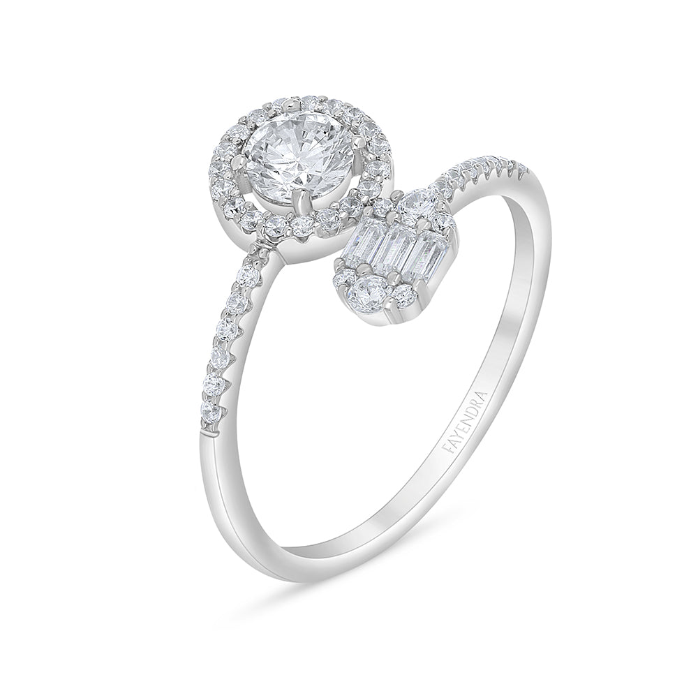 خاتم من الفضة الخالصة عيار 925 مطلي روديوم مرصع فص ابيض